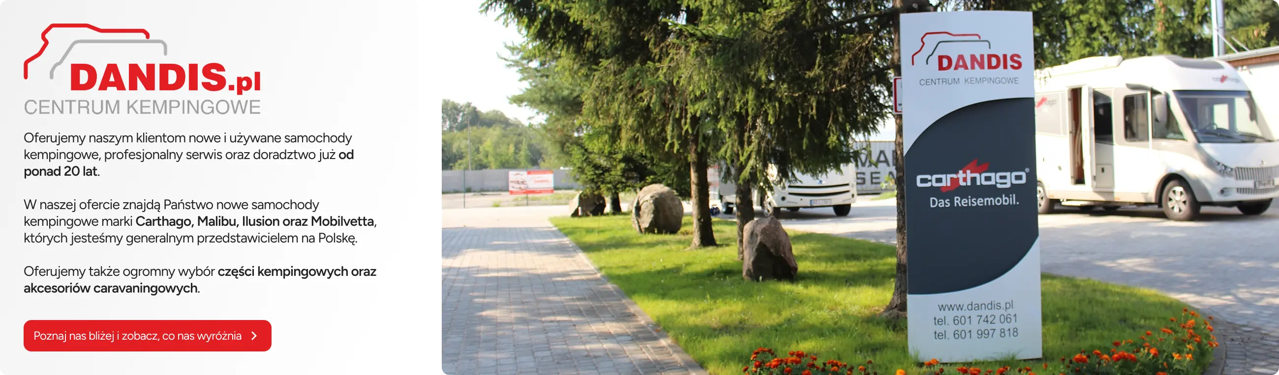 Chodź w naszej ofercie dostępne są części i akcesoria do kamperów, głównym profilem naszej działalności jest sprzedaz nowych samochodów kempingowych. Oferujemy modele renomowanych marek: Carthago, Rapido, Malibu, Mobilvetta oraz Itineo.