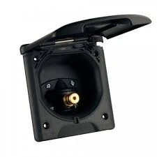 Gniazdo z reduktorem ciśnienia i pokrywą na zawiasach z zamkiem magnetycznym.